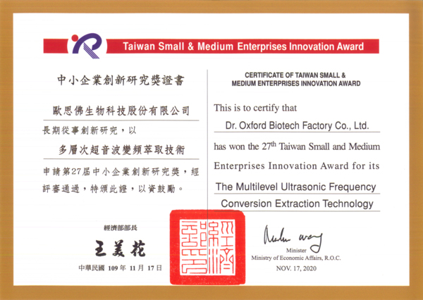 【Dr.OXFORD】榮獲第27屆創新研究獎「多層次超音波變頻萃取技術」