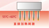電極周圍加熱到55°C~60°C,能深入真皮層刺激膠原蛋
