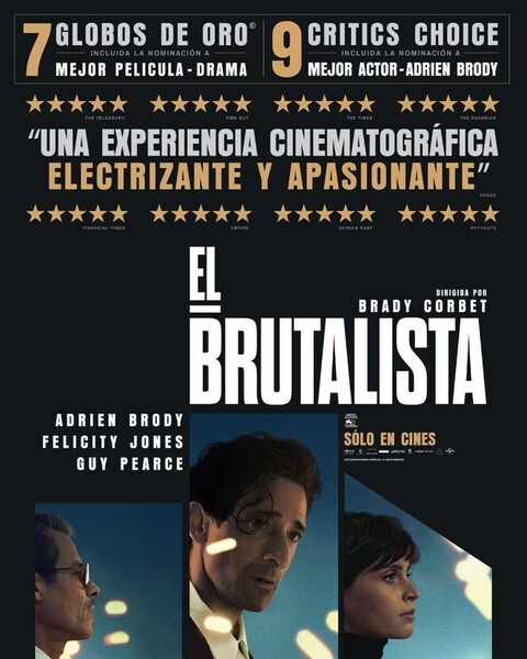 15.《粗獷派建築師 The Brutalist》~入圍奧斯卡最佳影片等10項大獎,布拉迪科貝特導演在2015年交出《邪惡的養成》、2018年《逆光天后》後,第三部作品《粗獷派建築師》更是成績斐然,已先拿下威尼斯影展最佳導演獎,並獲得金球獎最佳影片、最佳導演、最佳男主角三項大獎,尤其是找來安卓亞布洛迪主演,更是奧斯卡影帝得獎呼聲最高的演員,而費莉絲蒂瓊斯的演出也獲得奧斯卡最佳女配角入圍,另外,蓋皮爾斯、喬歐文、拉菲卡西迪、史黛西馬汀、亞歷桑德羅尼沃拉的演出都給人感覺像是活在那個世代的人。《粗獷派建築師》片長長達3小時34分,其中包含15分鐘的中場休息時間設計,電影給人的感覺很微妙,像是看一場現場表演,因為表演時間長,所以得有休息時間。不過,敘事緩慢、帶著時代流變的《粗獷派建築師》,講述的是納粹大屠殺下集中營倖存者猶太裔移民的經歷,電影開場的配樂磅礡,展現出充滿期盼的美國夢,然而最後卻是夢碎!《粗獷派建築師》是厲害的作品,攝影、配樂、佈景設計無不精美,也讓人覺得真有其事,雖然結局平淡,也似乎未交代好次要情節的收尾,然而本片的製作成本只有1千萬左右,好神奇!