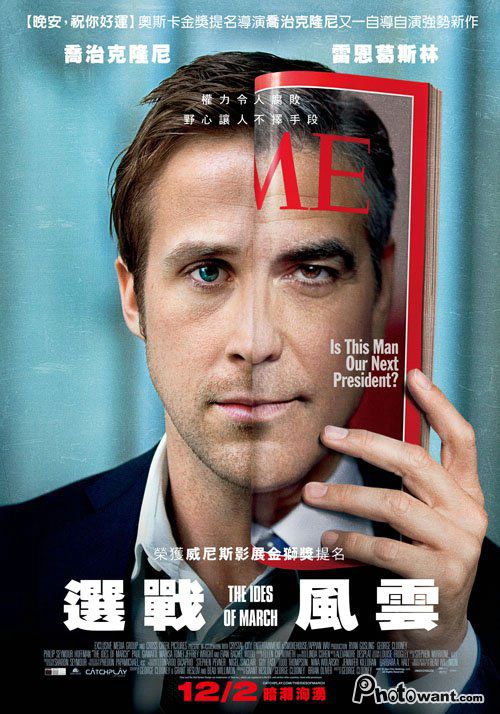 《選戰風雲 The Ides of March》~今年最精采的政治片,喬治庫隆尼自編自導,與雷恩葛斯林、菲力普西蒙霍夫曼、伊雯瑞秋伍德、瑪莉莎湯美互飆演技,然而優秀的劇本為本片贏得入圍金球獎最佳影片、最佳劇本,甚至是最佳導演、男主角。當候選人在台前的光鮮亮麗下,背後有多少計算與權謀,而兩個陣營的幕僚又是如何算計。當忠誠成為出局的口號,而道德底限不斷淪落,只有到達頂端才是贏家,也在男主角的抉擇後有一絲悲哀蔓延。片中細膩刻畫出政治及職場的現實,權力鬥爭下的陷阱令人心驚。