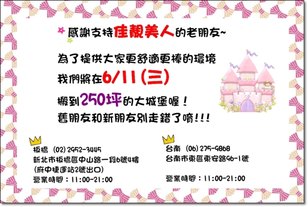 我們6/11要搬到250坪的大城堡囉!台北/板橋/粉刺/痘痘/痘疤/敏感/接睫毛/過敏/凹洞/做臉/除斑/評價/推薦