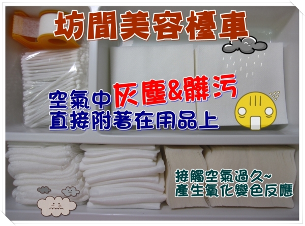坊間美容檯車所裝填的美容用品,幾乎都是採開放型擺設,或是使用非拋棄式(材料洗淨後,重覆使用),讓人疑慮個人衛生安全的處理及環境衛生的整潔