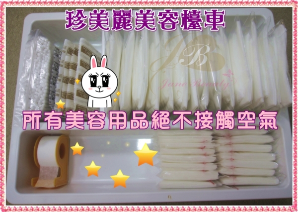 ★佳靚美人將每位顧客當天會使用的所有美容用品,予以真空式包裝裝填後密封,完全隔絕空氣中髒污、浮塵微粒等附著