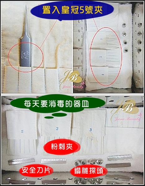 我們每天將 皇冠5號粉刺夾 + 鑽石微雕探頭 + 美容刀片