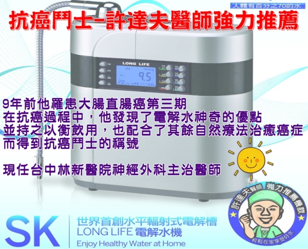 佳靚美人特別裝設價值五萬元的『長壽村 SK-100 多功能電解水機』與『RO逆滲透無菌水』為的就是每個朋友除了洗臉的水不一樣外,連喝的水也特別不一樣!