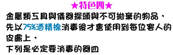 在清完粉刺與儀器治療後,會有許多隱藏性的小傷口,這時我們使用高成本的酸性離子水與RO逆滲透水這兩種做為清潔用水,避免傷口感染~是不是很衛生又貼心呀!