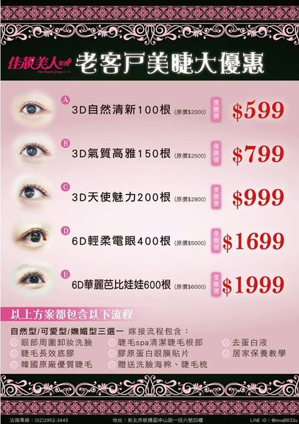 。不含補睫毛、卸睫毛、下睫毛