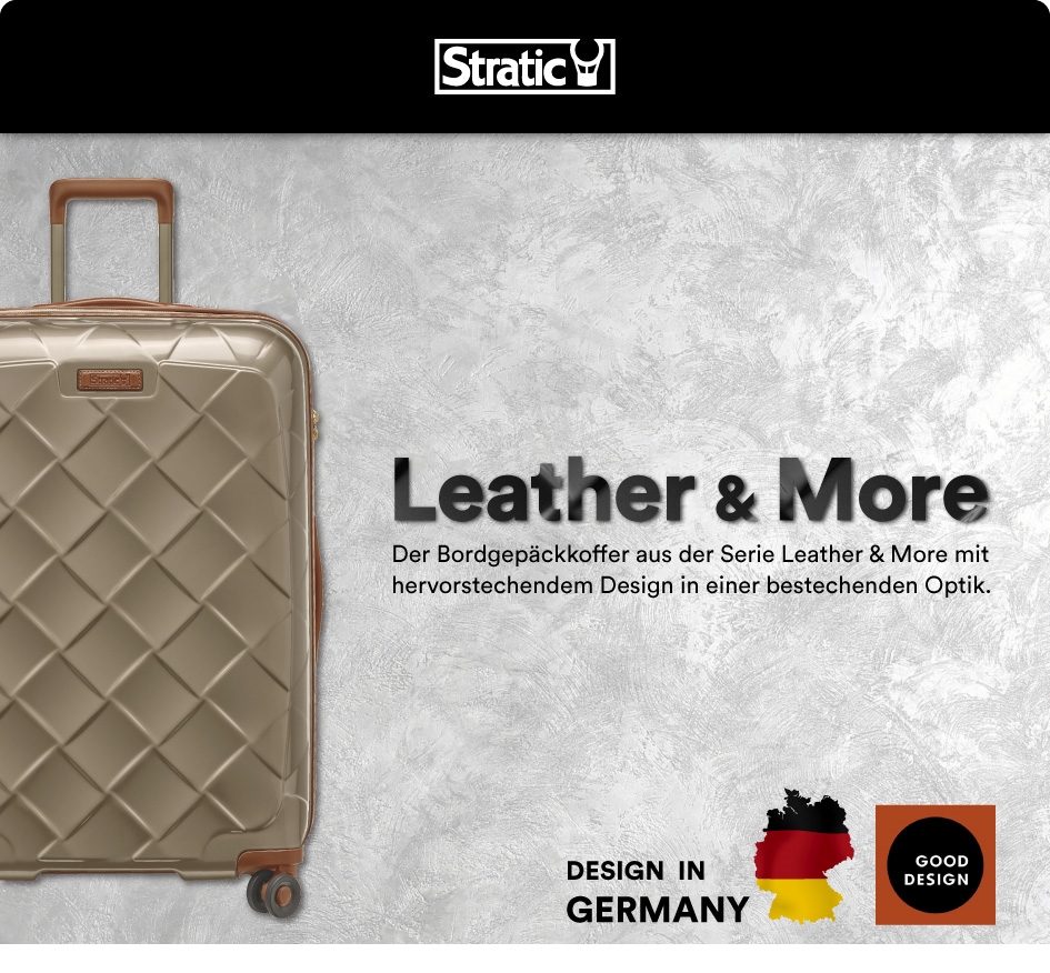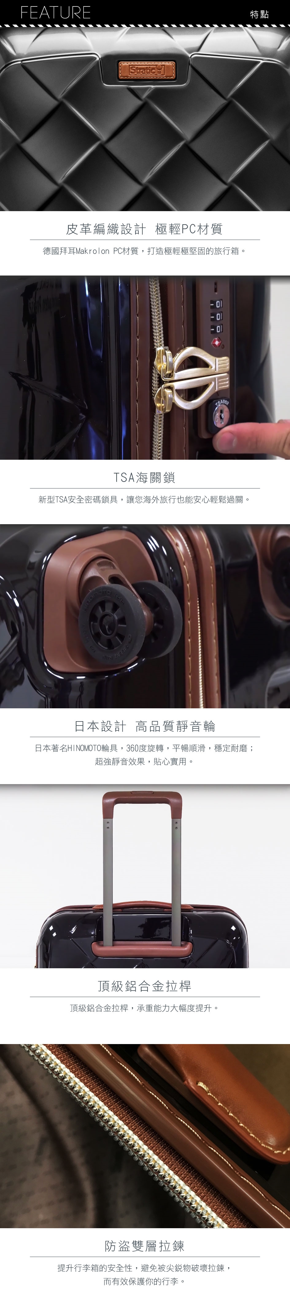 STRATIC為德國旅行箱老品牌 此款以真皮與PC結合的行李箱獲得世界設計獎項中歷史最古老的優良設計獎 終身保修 真皮logo 德國拜耳高品質PC輕量堅固 真皮地址吊牌 日本