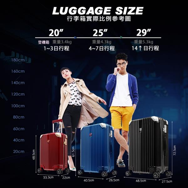 TSA海關鎖 防撞護角 鋁合金拉桿 TPU彈性提把 可拆式專利懸掛式內裡 X型衣物固定帶 德國Peroma雙軸承輪 承重度提升 順暢好拖行 擁有全球線上失物招領系統 行李箱都有一個身
