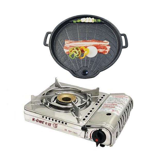【卡旺】雙安全卡式爐+雙用圓烤盤(K1-A005D+NY2499)