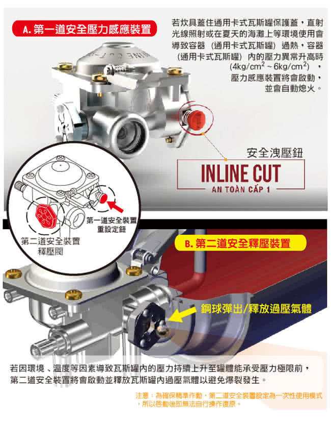 安全裝置:內截式斷氣安全裝置/安全釋壓裝置