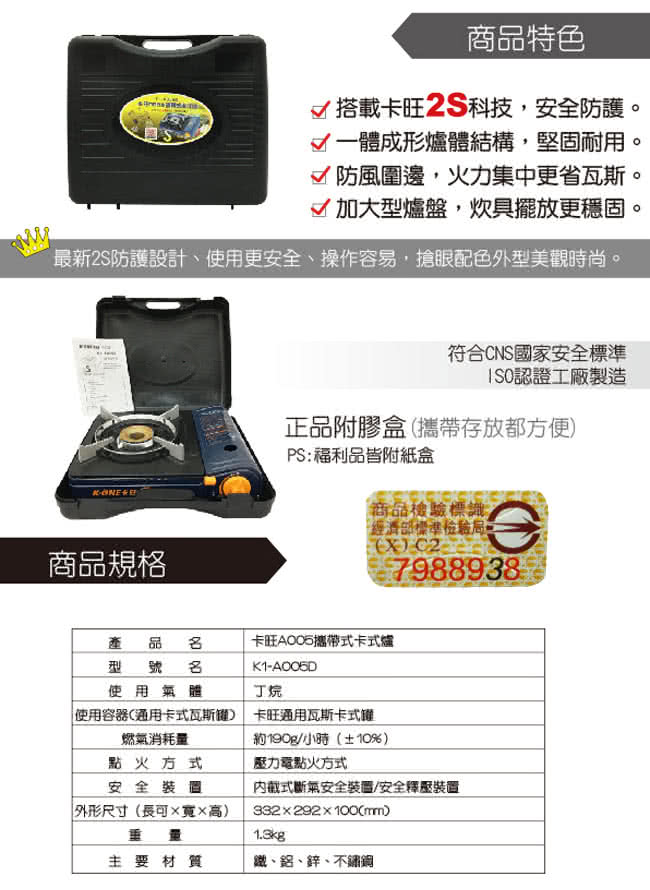 品名:卡旺A005攜帶式卡式爐