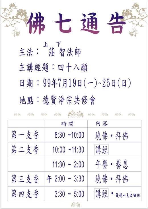 2010/07/19~07/25佛七消息-四十八願-莊智法師主講