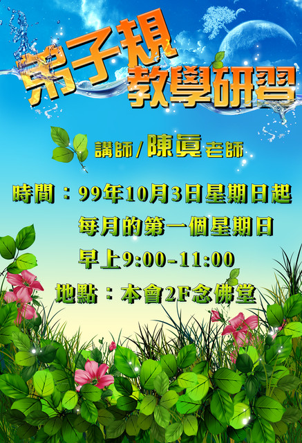 本會於2010/08/11星期三晚上啟請鄭金昌老師與陳真老師蒞臨,為所有有心於弟子規教育推廣的老師以及家長們舉行座談會,結果座無虛席!參加者無不法喜充滿、滿載而歸!
