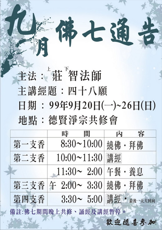 2010/09/20~09/26佛七消息-四十八願-莊智法師主講
