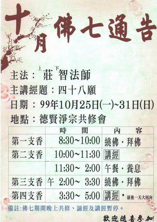 2010/09/20~09/26佛七消息-四十八願-莊智法師主講
