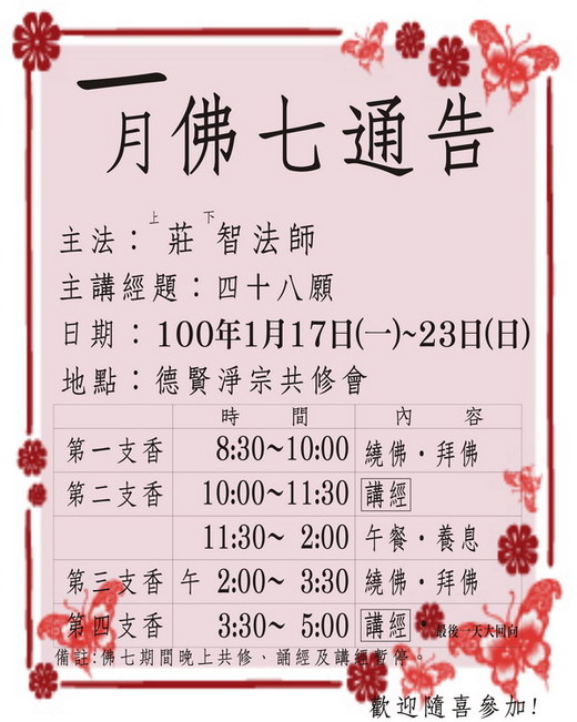 2011/1月份佛七-四十八願-莊智法師主講