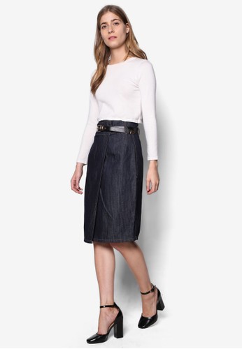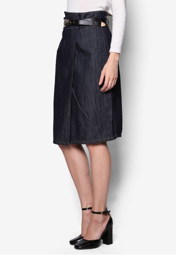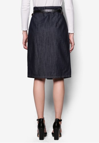 【網購】zalora taiwan購物網腰帶裹飾丹寧esprit台灣outlet及膝短裙, 服飾, 裙子