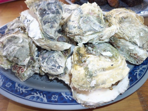 我們點了牡蠣、蝦子、甜不辣、秋刀魚、烤肉、雞翅……,