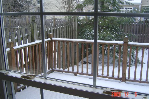 這是我來美之後的第一場大雪。眼前的所有景物都被白色覆蓋住了,好聖潔靜謚的感覺,讓我巴著窗戶久久不捨將視線轉移。這對生長在亞熱帶國度的我實在太震撼,太感動了。沒想到一個晚上,可以讓窗外的世界完全變了個模樣。眼界所及都是白,屋頂上、樹梢上、露臺、圍籬、台階.......等,真是太美妙了。