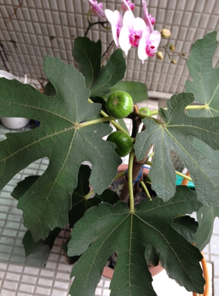 在復甦的蘭花之外,前庭的盆栽中還有一個驚喜!那株小小的無花果又結果子了。
