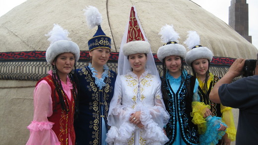 照片一是中亞的小女孩。照片二是節慶中著古裝的吉爾吉斯女孩。