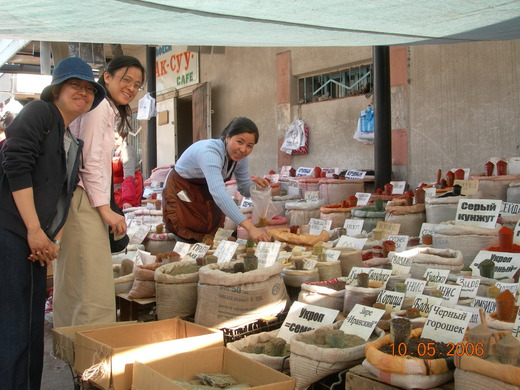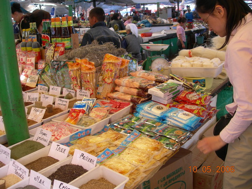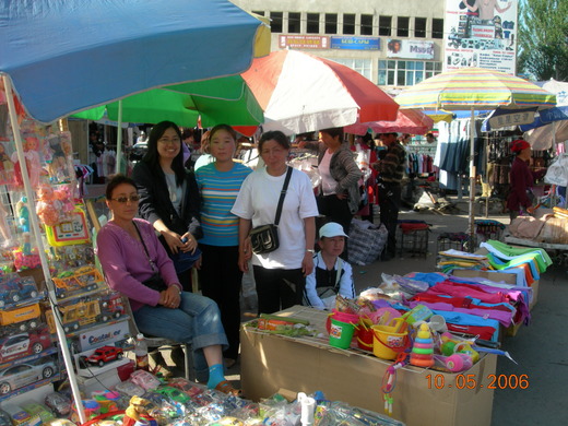 初到中亞,我站在吉爾吉斯的首都比什凱克街頭上,看到滿街都是像我一樣,黑頭髮﹑黑眼睛﹑黃皮膚的人。在傳統市集裡更是萬頭鑽動,都是黑壓壓的一片。那些與我擦肩而過的人們,那些提著尼龍袋子買菜的婦女,那些菜販,魚販的叫賣,攤架上粗糙的廉價玩具,泡麵﹑粉絲,醬油﹑豆腐…叫我想起小時候跟著母親上菜市場的情景。(待續)