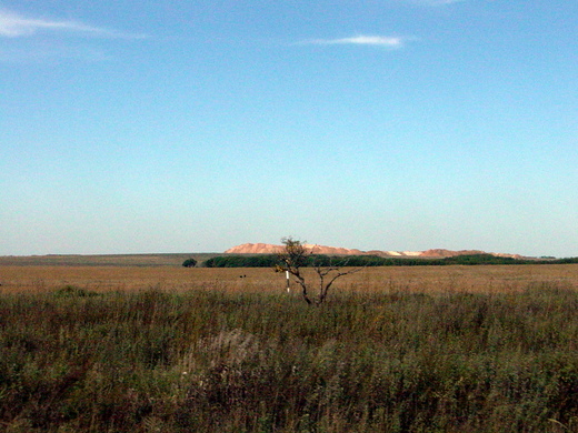 下圖一:沿途所見開放式煤礦。煤礦就在地表上,不用挖礦坑,鋤頭一掘一鏟就是滿車煤炭。