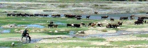 我本來還在看著窗外,努力在草原遠山之間緬懷盛唐絲路的風采。