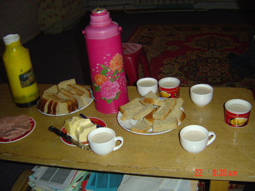 這是個有趣的組合:我們,華人﹑韓國人﹑蒙古人﹑俄國人在達爾汗的一個家中,喝著從中國保溫瓶倒出來的蒙古茶,用俄語和蒙古語交談。