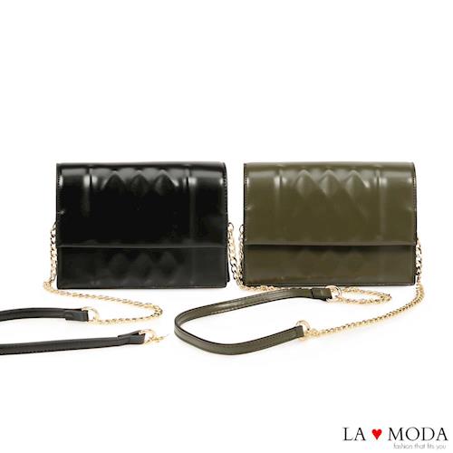 La Moda 約會晚宴必備單品菱格壓紋肩背斜背手拿鍊帶小包 (共2色)必敗好物