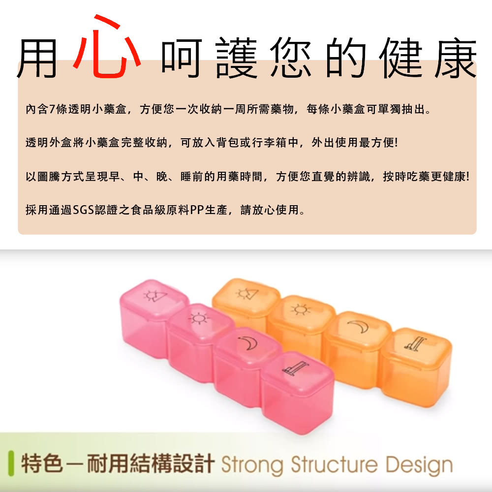 *內含七條透明保健盒,方便您一次收納一周所需藥物 。