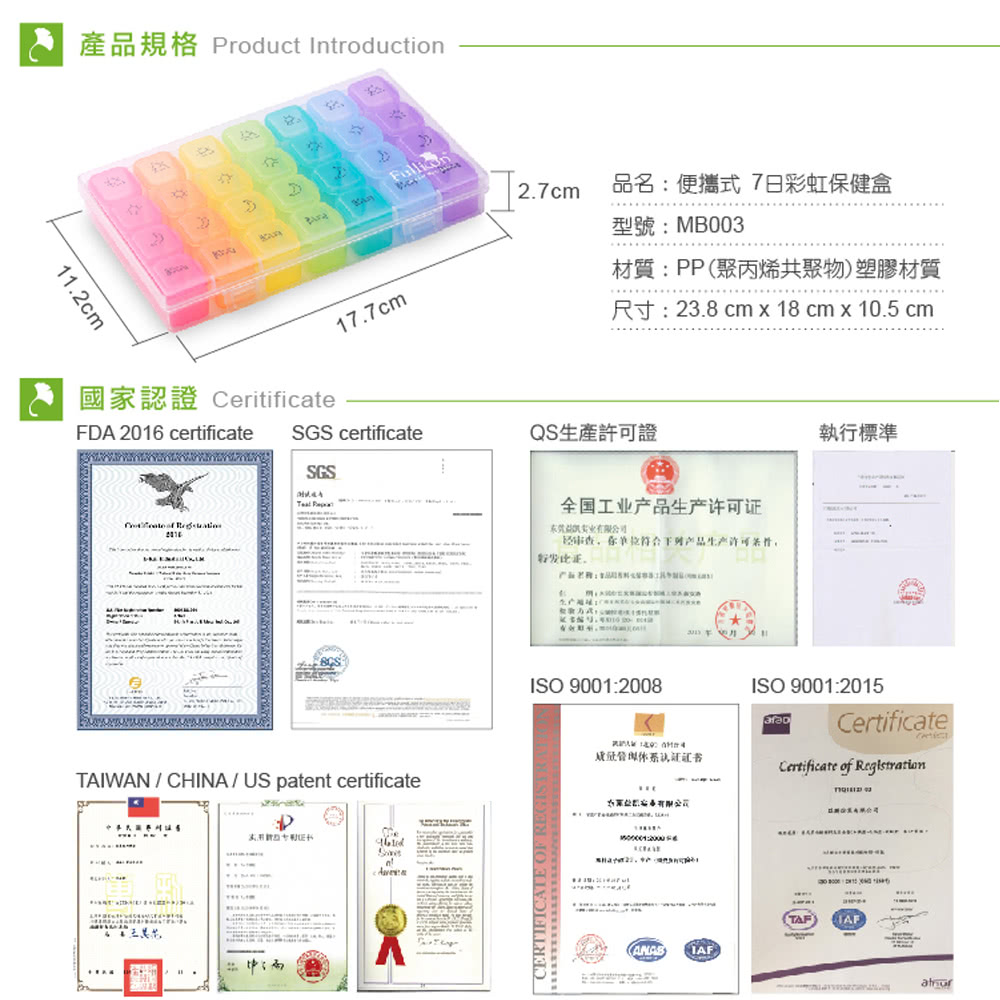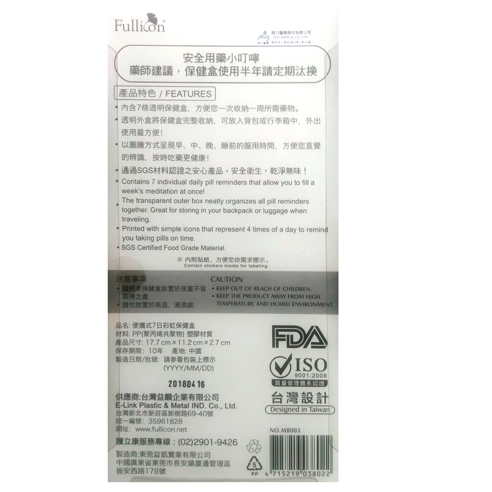 6129913 【Fullicon護立康】7日彩虹藥盒-28格(保健食品-藥品-小物收納盒),