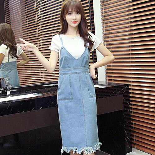 吊帶牛仔連身裙(淺藍色S~L)*ORead*