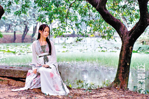 穿著漢服的羅冰出現在白雲山桃花澗。