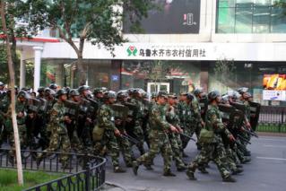報導引述香港人權民主機構等的消息報導指出,中國已在新疆的烏魯木齊等四地出動超過3萬名的軍隊和武警並投入裝甲車。