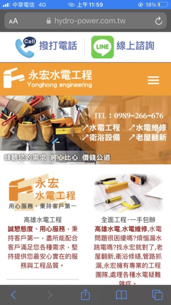 有規模的水電行,通常會以水電公司、水電工程來取代水電行的字樣,因此找到有官網的水電行,是佩弟評價一間水電行的依據!