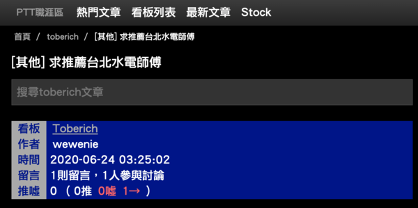 Mobile01、ptt、巴哈姆特、yahoo知識家,輸入關鍵字“台北水電”,就可以查到評價!