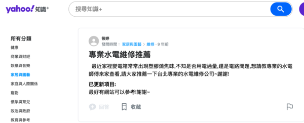 很多論壇都可以找到以前有人分享水電維修的經驗,例如: