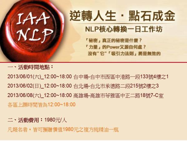 IaaNLP 「核心轉換一日工作坊」北中南開課日期