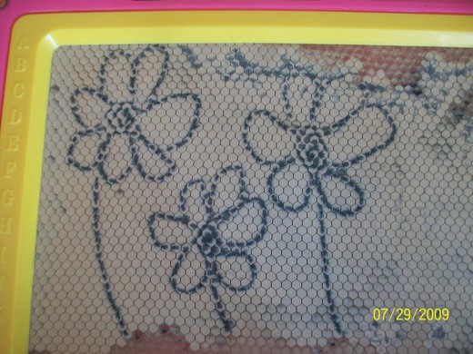 然後女兒又畫了三朵花(下圖),說她比較喜歡聞花的香味,不喜歡聞媽媽的臭屁味!呵!