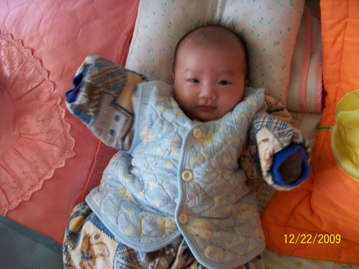 媽媽喜悅的抱著剛出生不久的小外孫,說:「這種溫溫的感覺最好,是冬天最溫暖的懷爐。」