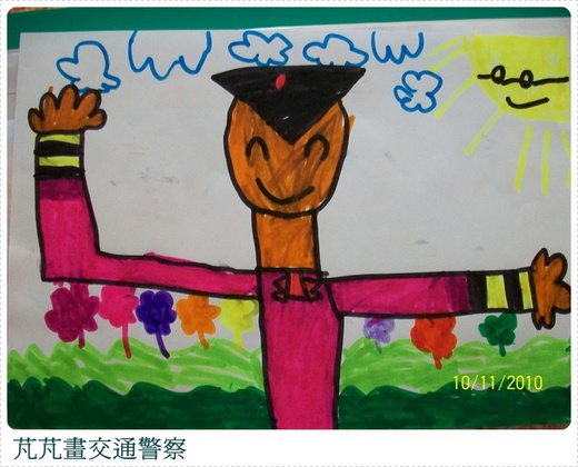 另外下面兩幅,芃芃說是美術班老師敎他們畫的,但畫完沒有發回,所以芃芃回到家裡,再將自己於學校畫的再畫一次,算是重新呈現。