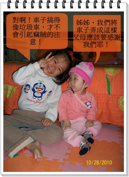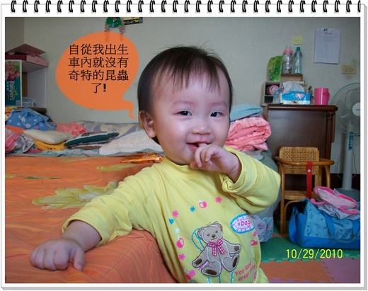 自從小女兒出生後,車子更亂、更髒、更可與垃圾車媲美了,但卻沒有再出現奇怪的昆蟲囉!或許是小女兒太過可愛囉!連昆蟲都不容侵犯呢!哈哈!