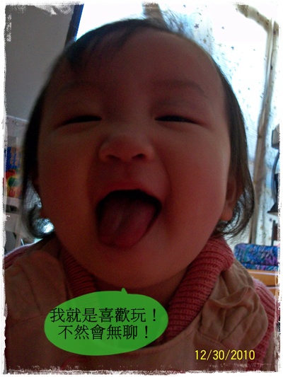 陪瑋瑋唱歌還要帶動作呢!我唱歌也會刻意忽快忽慢,唱快的時候,動作也會加快,瑋瑋就會開懷大笑。只要玩一次瑋瑋就無法自拔,還要不停歇的玩下去…,不然就以「哭」來示威。