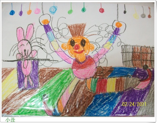 我很喜歡大女兒畫的小丑。小丑還會變魔術,變出一隻兔子。