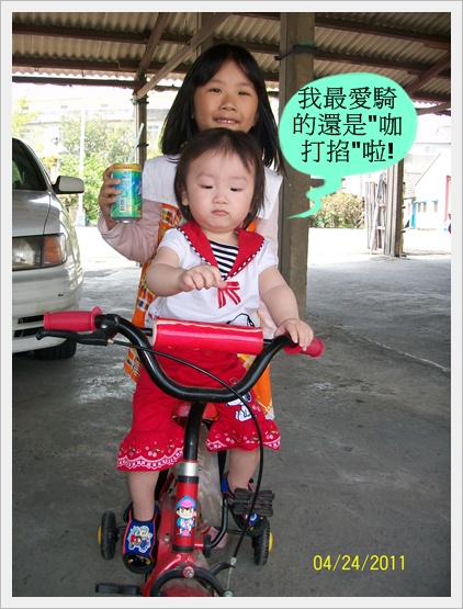 過沒多久兩人又和好了,瑋瑋繼續坐在芃芃後面,並抱著芃芃,兩人都大叫「ㄅㄨ ㄅㄨ~,出發囉」。真是美好合諧的畫面啊!