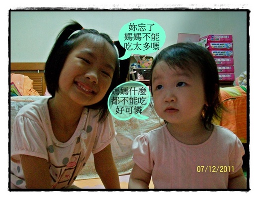 現在我深深的體會那種想吃卻要不能吃的感受,呵!不過我也知道大女兒是為我好,大女兒說:「我不希望媽媽太早死掉」。看來我的身體欠佳,也帶給才僅七歲的大女兒不少壓力吧!