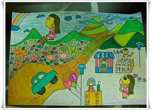 每次去夜市我的唾液分泌就旺盛了,看到什麼都想吃,才會畫了這麼一張圖。大女兒隔日醒來看著我畫的圖,就問我:「媽媽妳為什麼要寫『想吃』啊?」