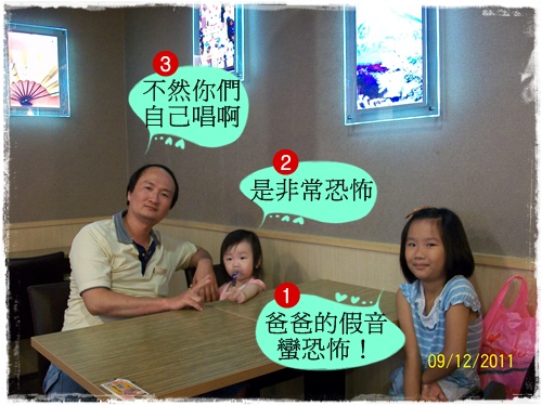 老公雖然唱得不好聽,小女兒還是很給面子的跟著唱和,而且還唱得很開心。我就說:「雖然你這『音響』不怎樣,但還有小粉絲捧場,真不錯!」更誇張的是,小女兒還比平日快樂的手舞足蹈呢!尤其是唱到「小星星」的時候,小女兒手又揮、又轉的。大女兒也加入合音的行列,就更炒熱氣氛,頓時,我覺得車頂好像快掀開來…。